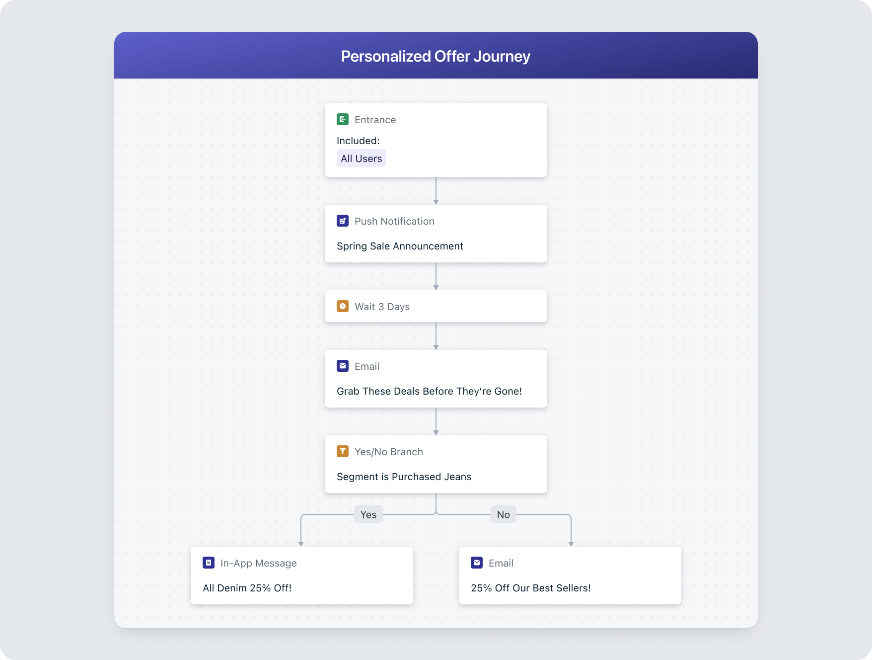 This is also where experimentation pays off. Within OneSignal, you can use A/B Testing (even within automated cross-channel Journeys) to test different tones, headlines, and button copy across push, email, and in-app messages, then automatically learn which framing resonates most with your audience segments. Over time, your system gets smarter about why users respond, not just when.