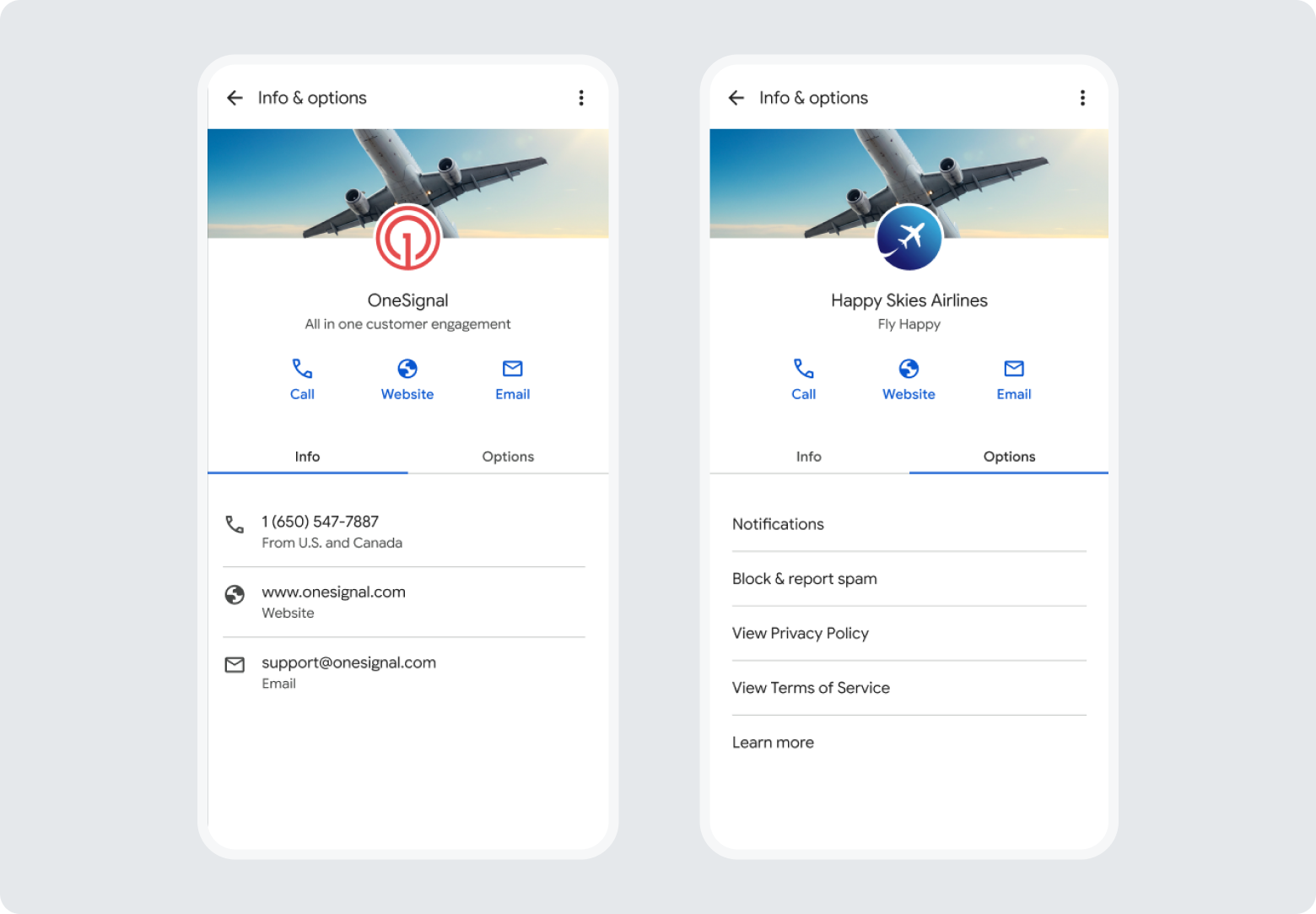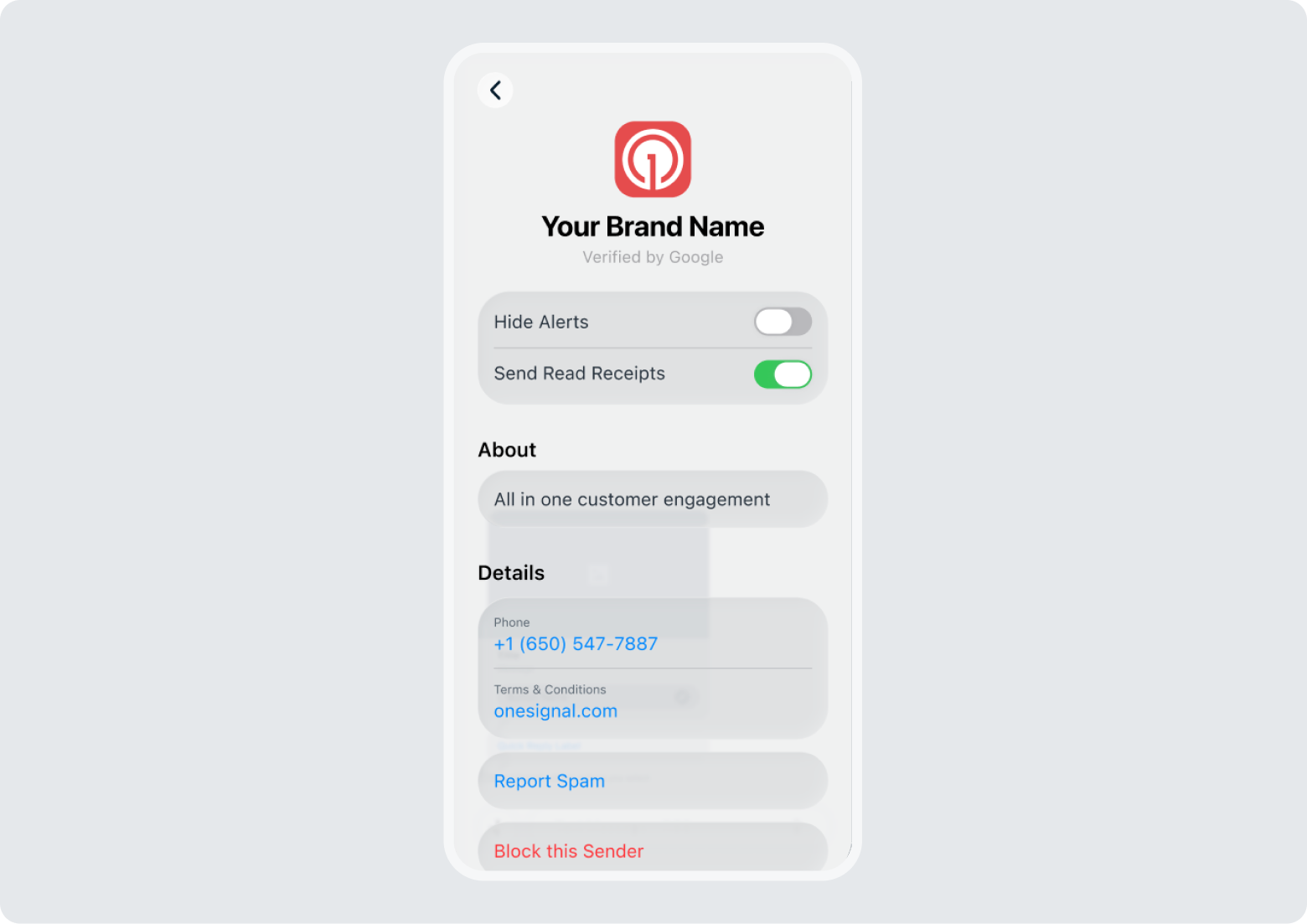 Instead of showing up as an unknown number or a bare sender ID (like SMS), RCS lets brands present a rich, trusted contact card that includes: